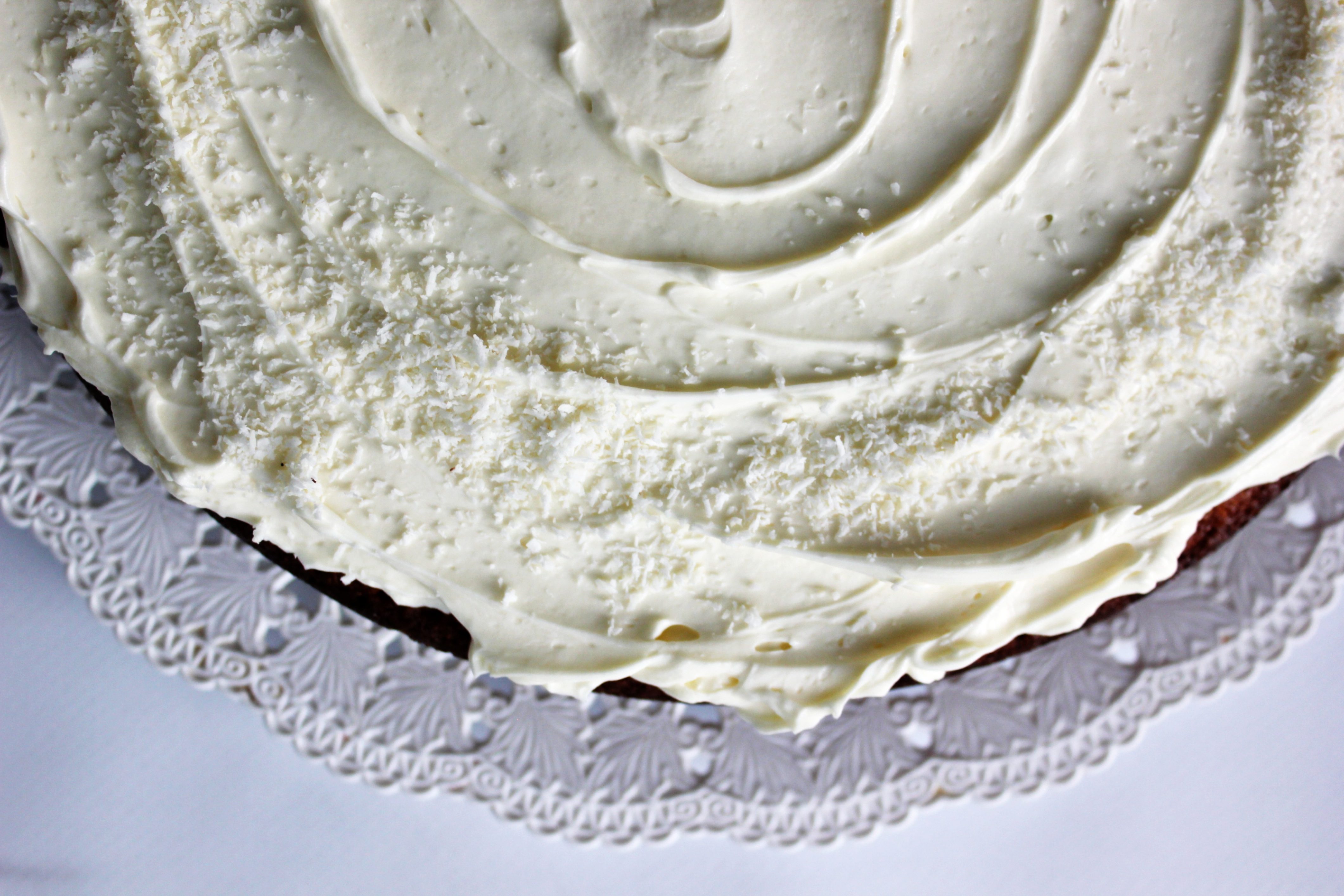 Mascarpone, šećer i slatko vrhnje izmiksati. Ohladeni kolač premazati kremom. Posuti kokosom.